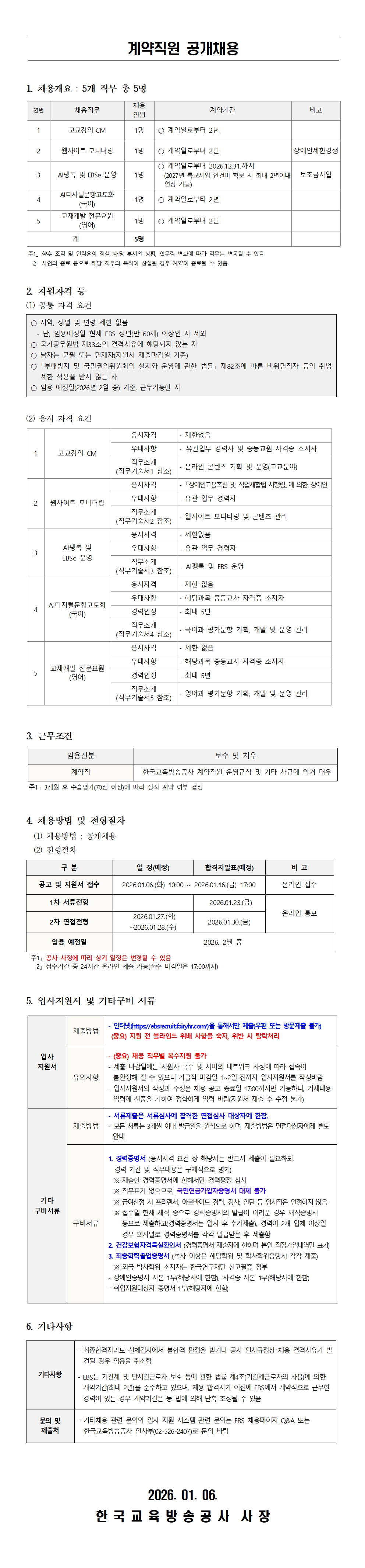 계약직원 공개채용 공고