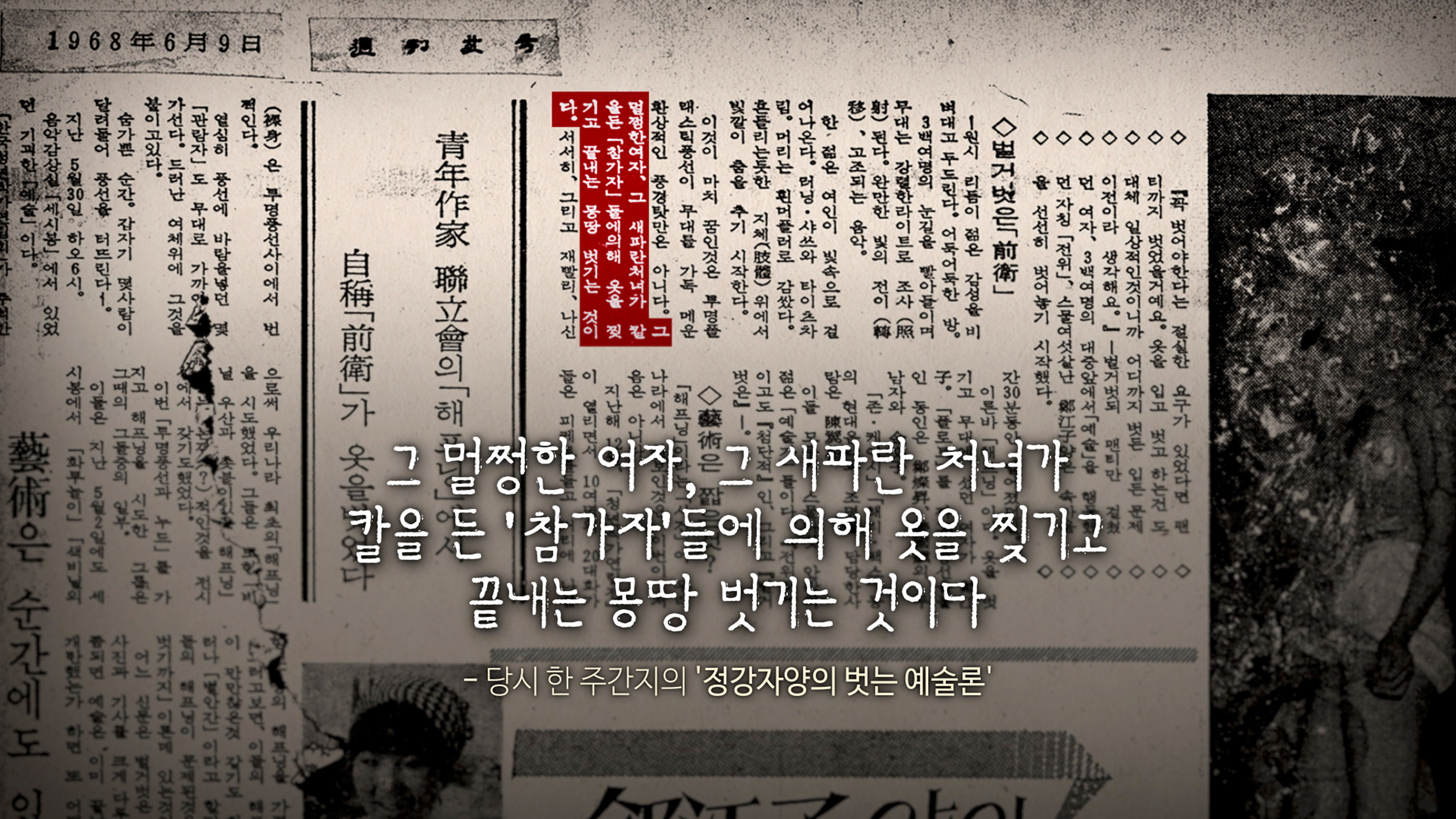 - 한국 최초의 누드 퍼포먼스 1세대 전위 예술가, 정강자